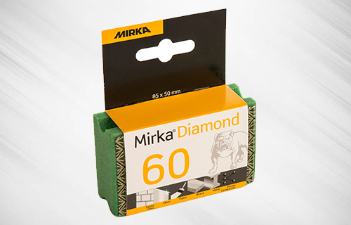 Mirka® Diamond Sanding Sponges for sanding edges of tiles and stone, stripping paint of wood, repairing glass chips and edges, metal hand tools and blades as well as composites.